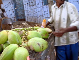 夕方、帰り際に商店街で止まって新しいサンダルを買っていました。