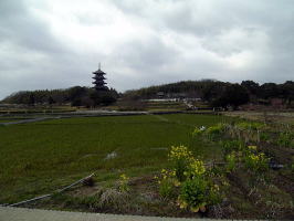 分寺で野に咲く菜の花を景色に添える五重の塔で有名な国